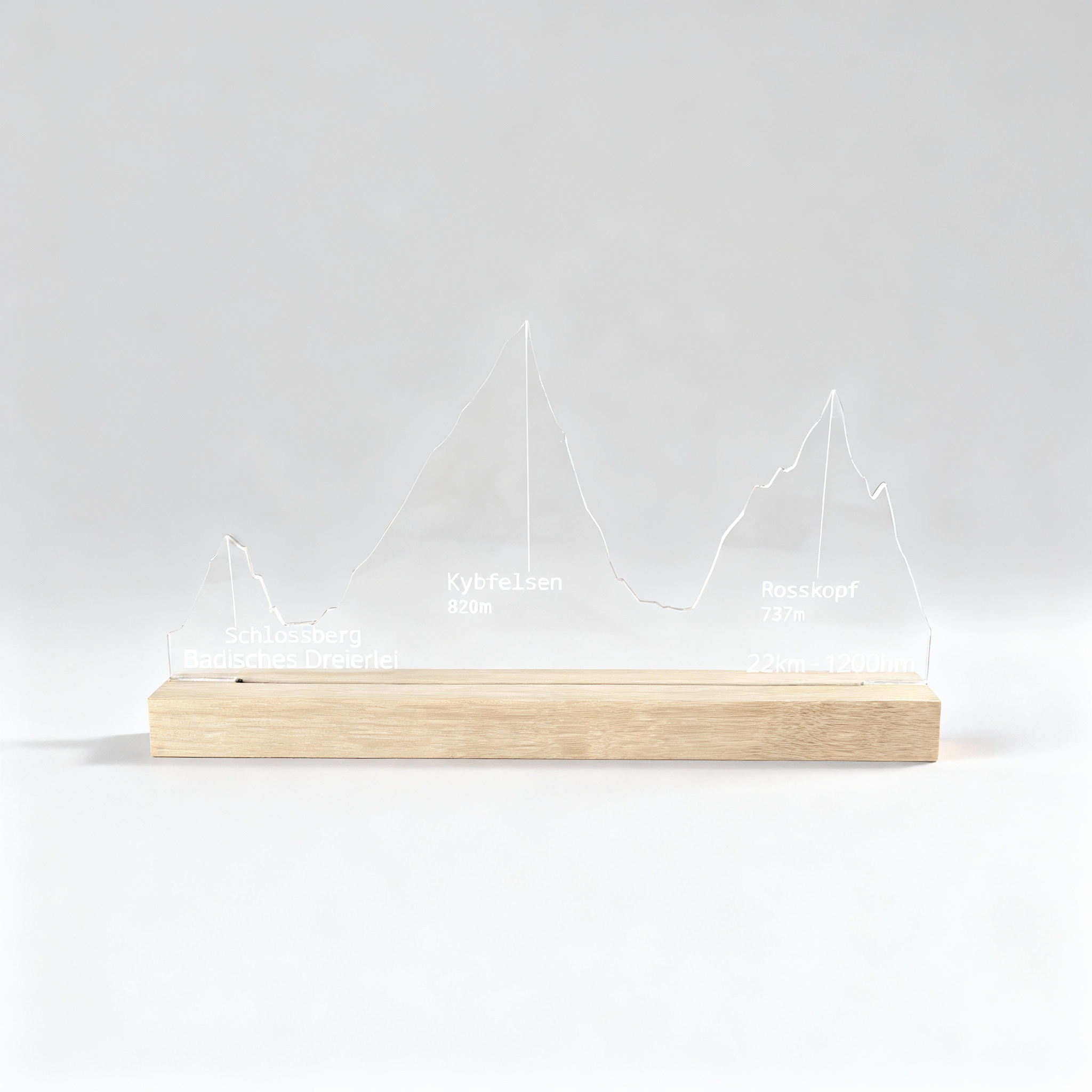 Mach dein größtes Abenteuer unvergesslich. Wir verwandeln deine GPX-Daten in ein exklusives Design-Objekt aus Acrylglas.